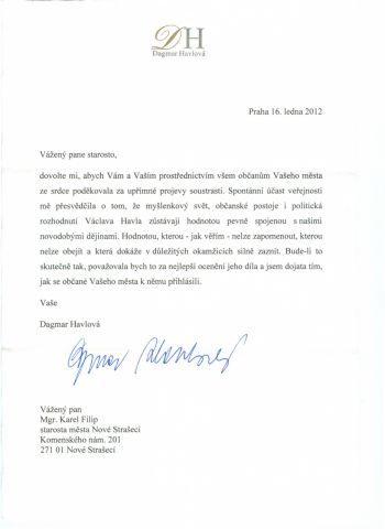 Děkovný dopis paní Dagmar Havlové ke stažení v pdf