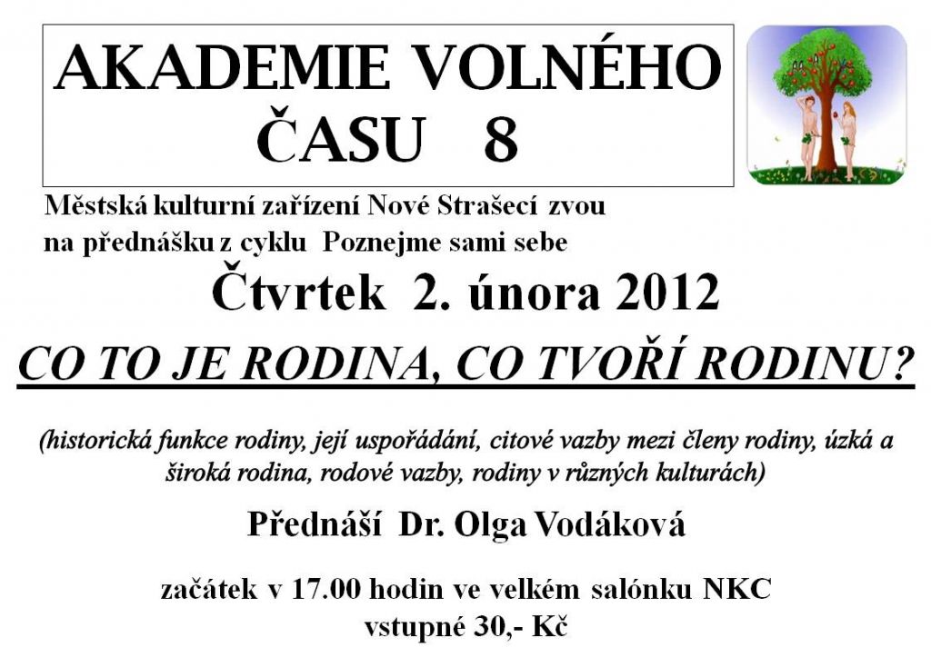 Co je rodina, co tvoří rodinu? v 17 hodin, vstupné 30 Kč Novostrašecké kulturní centrum