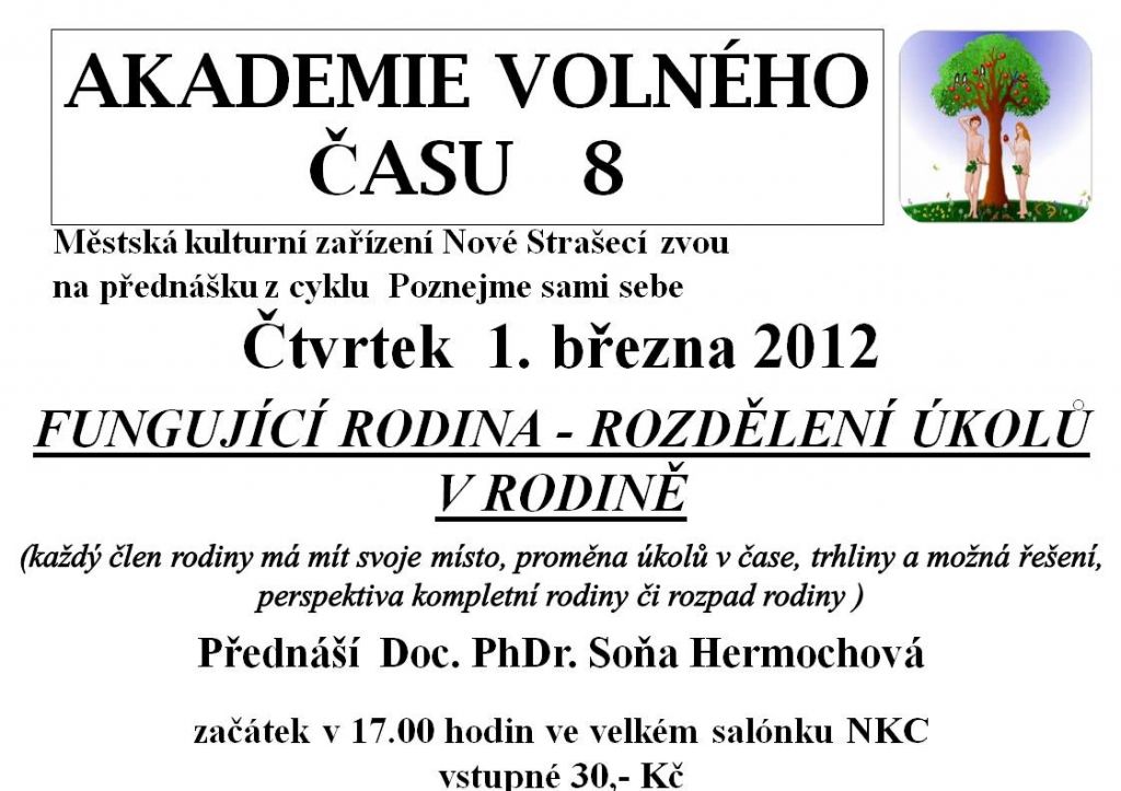 Fungující rodin - rozdělení úkolů v rodině. Přednáší Doc. PhDr. Soňa Hermochová.