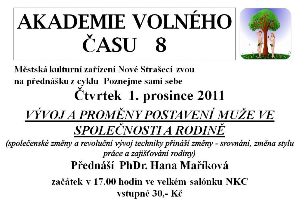 Přednáší PhDr. Hana Maříková. V 17 hodin, velký salonek NKC.
