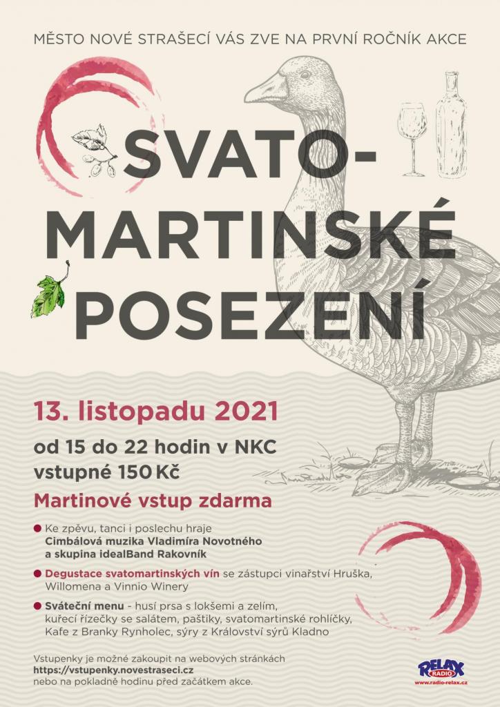 V NKC se bude v sobotu 13. listopadu od 15 do 22 hodin konat první Svatomartinské posezení s hudbou, výběrem chutných pokrmů a ochutnávkou svatomartinských vín z renomovaných vinařství. Kdo nebude chtít jíst ani pít, může jen poslouchat či tančit na hudbu rakovnického Ideal Bandu a Cimbálové muziky Vladimíra Novotného.