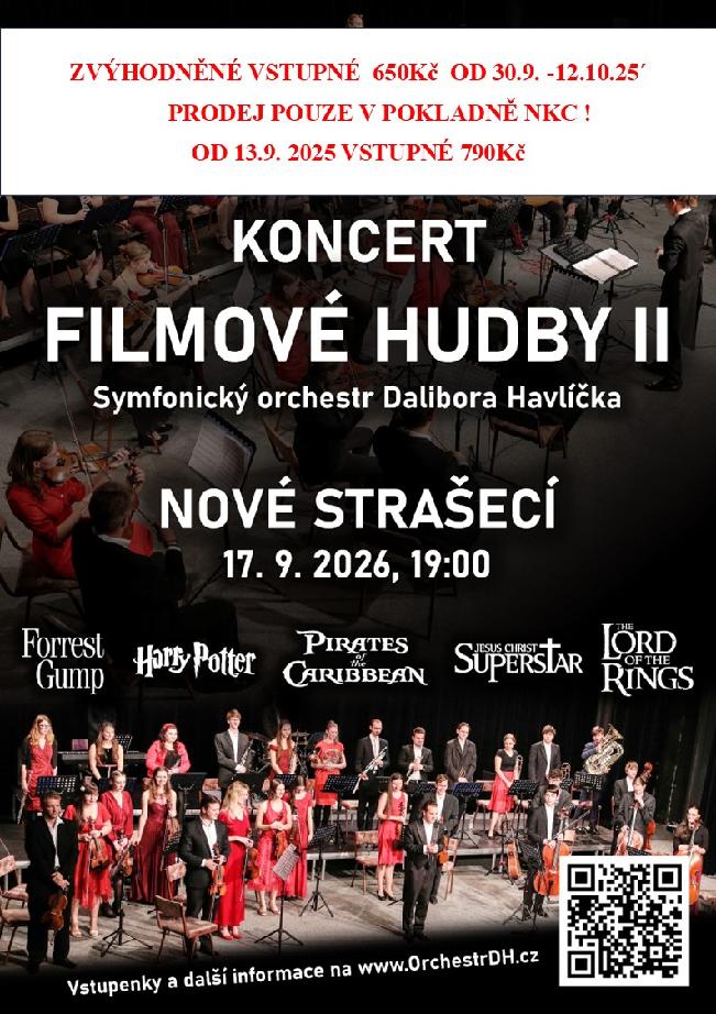 Do 12. října můžete koupit vstupenky za zvýhodněnou cenu na druhý koncert Symfonického orchestru, který opět zahraje filmové melodie. Vstupné je 790 Kč. Zlevněné vstupenky za 650 Kč zakoupíte pouze osobně v pokladně NKC. (cena neplatí pro rezervace a online prodej