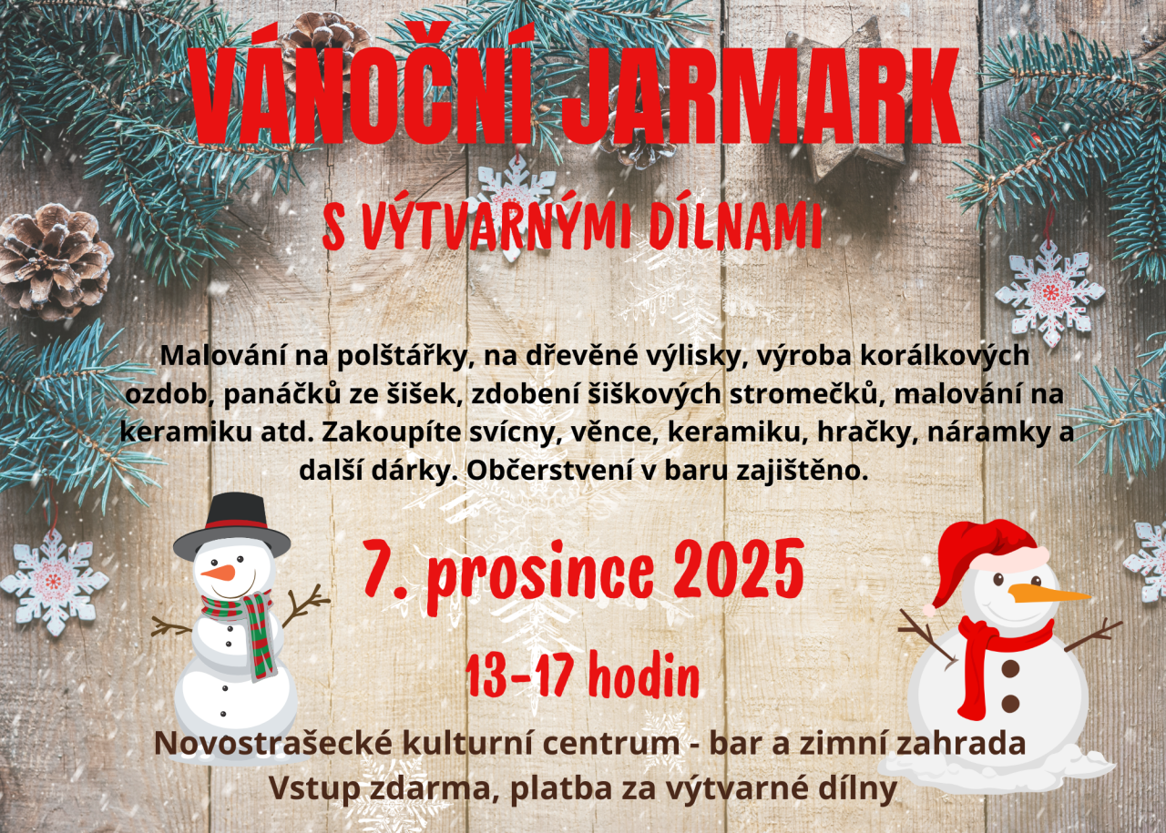 Malování na polštářky, na dřevěné výlisky, výroba korálkových ozdob, panáčků ze šišek, zdobení šiškových stromečků, malování na keramiku atd. Zakoupíte svícny, věnce, keramiku, hračky, náramky a další dárky. Občerstvení v baru zajištěno.